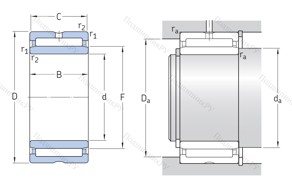 - Воспринимает радиальнонаправленную нагрузку гораздо лучше, нежели шариковые аналоги, обладающие тем же внешним и внутренним диаметром.