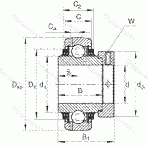 сферическое наружное кольцо, фиксация эксцентриковым закрепительным кольцом, двусторонние T-уплотнения