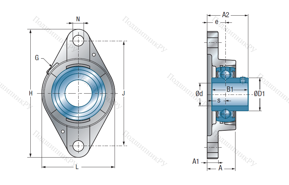 Внешнее кольцо – сферическое, за счет чего система склонна к самоцентрированию и автоматическому исправлению недочетов монтажа. Может устанавливаться совместно с подшипниками типов EX200, ES200, US200, H2300, UK200.