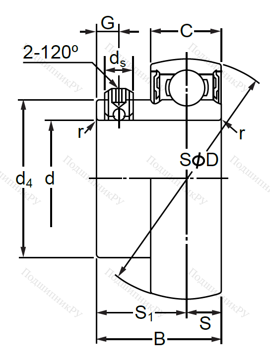 - Позволяет компенсировать перекосы вала при монтаже с такого же вида отверстием.