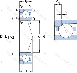 | Расчётный коэффициент (подшипники с расположением по О-образной и X-образной схемам) | X2 | 0.67 |